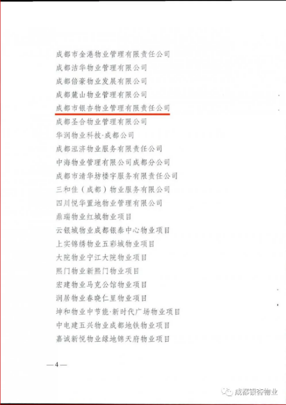 成都市银杏物业管理有限责任公司,隶属于成都市机关事务管理局, 是具有独立法人资格的全资国有一级资质物业管理企业。公司自1998年成立以来, 始终深耕党政机关办公物业管理与服务保障市场,致力于提供包括党政机关物业管理、会议服务、餐饮服务、工程维保等各类优质物业配套服务。20余载躬耕不辍,银杏物业始终坚持以优质的服务赢得信任,以优异的成绩赢得尊重,以优秀的团队赢得未来, 先后通过 ISO 9001、ISO 14001、OHS 18001等体系认证,成长为中国物业管理行业党政机关办公物业服务领域领跑者。