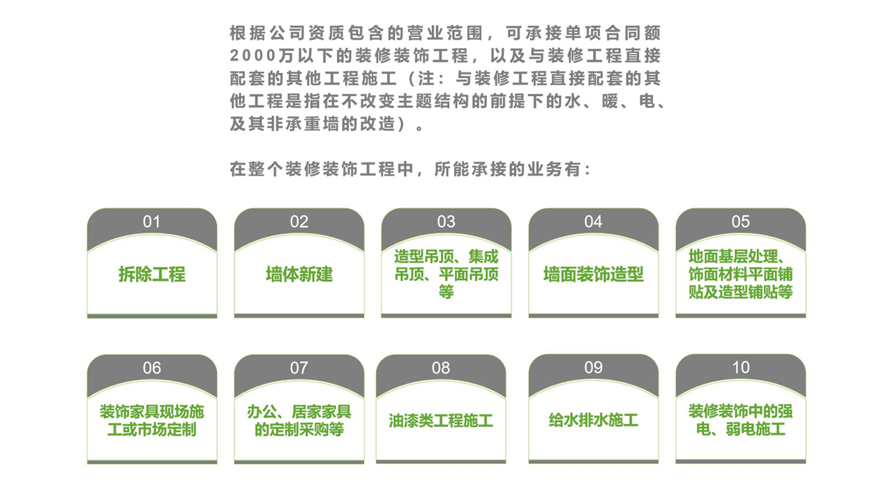 装修装饰工程,以及与装修工程直接配套的其他工程施工