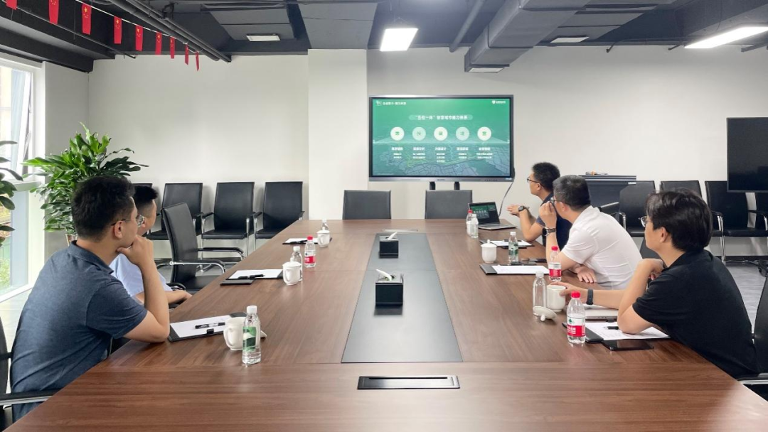 随后,国资中心相关负责人与王旭一行在会议室座谈。会上,王旭介绍了公司“五位一体”智慧城市能力体系,双方就现代公物仓、国有资产管理融入“智慧蓉城”建设,实现全面持续发展等方面内容展开了深入研讨。