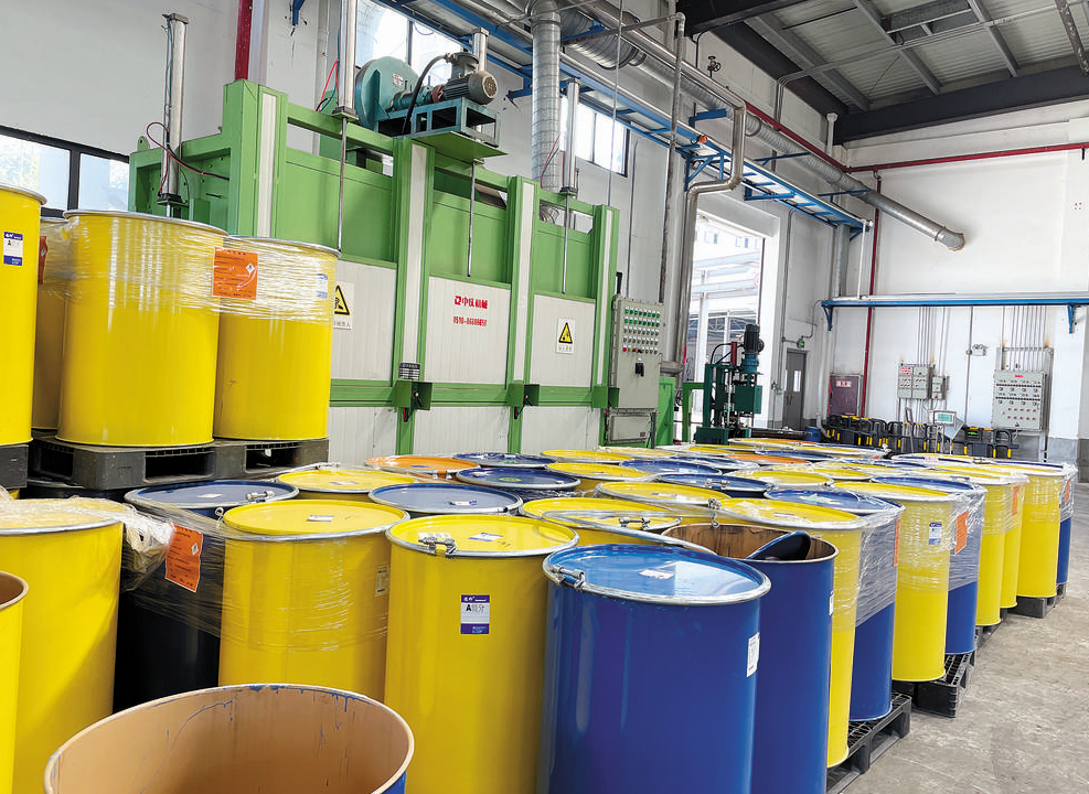 在综合利用车间内,一批作为危险废物包装容器的铁制桶正在等待清洗处置,工人穿戴着专用防护装备正在忙碌生产。“这些沾染毒性或腐蚀性危废的包装物都需要通过工艺清洗后,才能进入下一步处理流程。”万钱指着车间内被塑料薄膜包在一起的彩色铁桶说道,200升及以上、以下的再生包装桶主要用于一般工业企业原辅料再次包装使用或涂料、一般化工等生产企业危险废物的再次包装使用,而报废钢桶、塑料桶经处理后,一般制成边长约3~4厘米的金属块和塑料块,作为废金属和废塑料出售给炼钢和再生塑料企业作为原料。