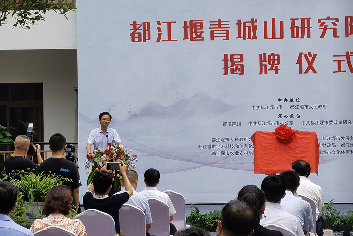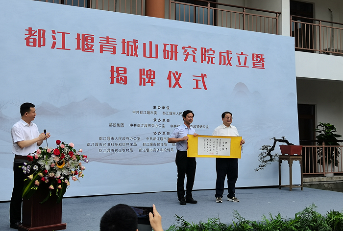 2022年7月16日,都江堰青城山研究院揭牌仪式在风景如画、闻名天下的青城山下隆重举行。四川省委宣传副部长、省社科院党委书记高中伟和中共都江堰市委书记蒋蔚炜共同为研究院揭牌。省决策咨询委员会副主任焦伟侠,省科协党组书记、副主席毛大付,省社科联党组书记、副主席姜怡,省决策咨询委员会副主任、成都市社科联主席李后强,省社科院副院长李中锋,著名经济学家、西财智库首席经济学家刘锡良教授等领导与专家学者代表出席。