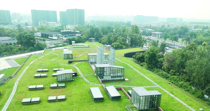 ▲武侯区城乡环境综合治理中心地面上有办公楼、草坪,地下还埋着一个“超级工厂”