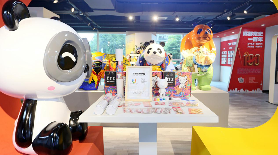 成华区展位深度融合元素丰富、色彩多样的熊猫文创产品与内容丰厚的党史有声读物。利用“党建+网络”平台,打造“习近平总书记对你说”“四史教育有声读物”“成都党史一百年”“读好书强党性”四个特色板块。在“GOGOPANDA” 展台集中展示雕塑、插画、旅游、餐饮、服饰等与熊猫元素结合的文创产品,展现了成华区文化魅力、旅游特色及风貌特点。