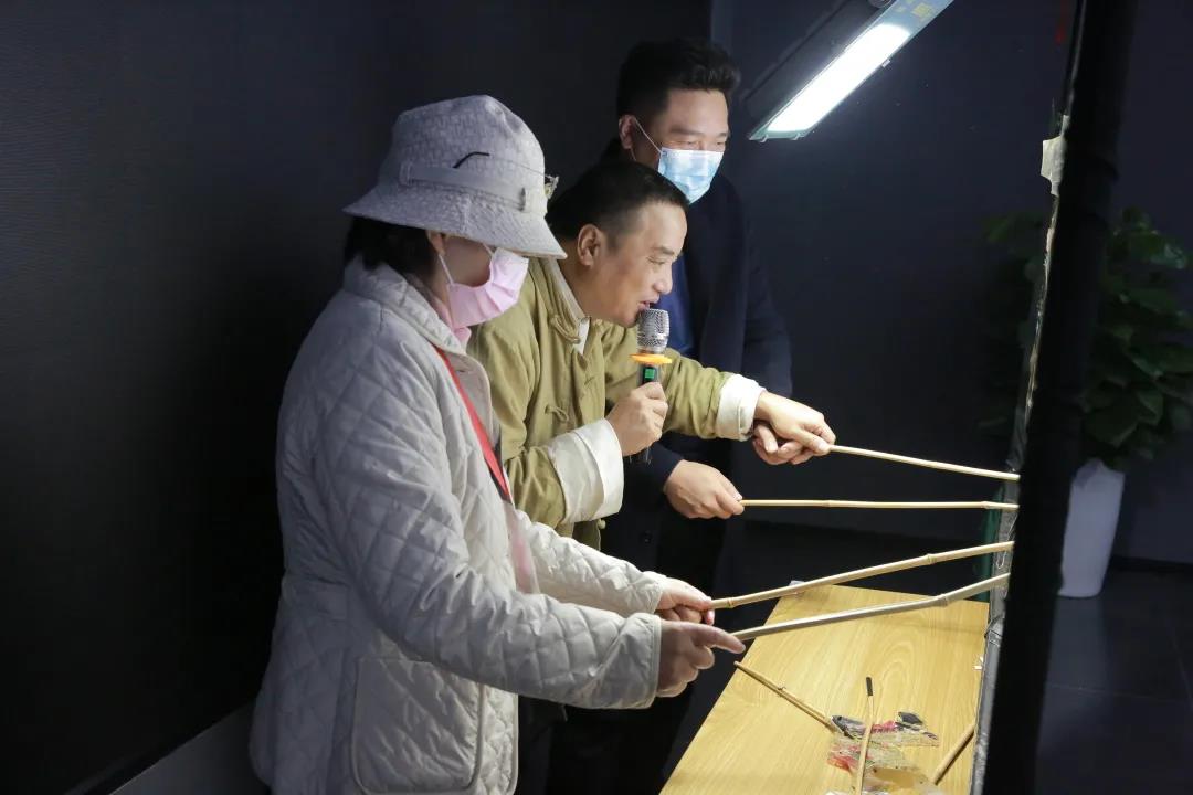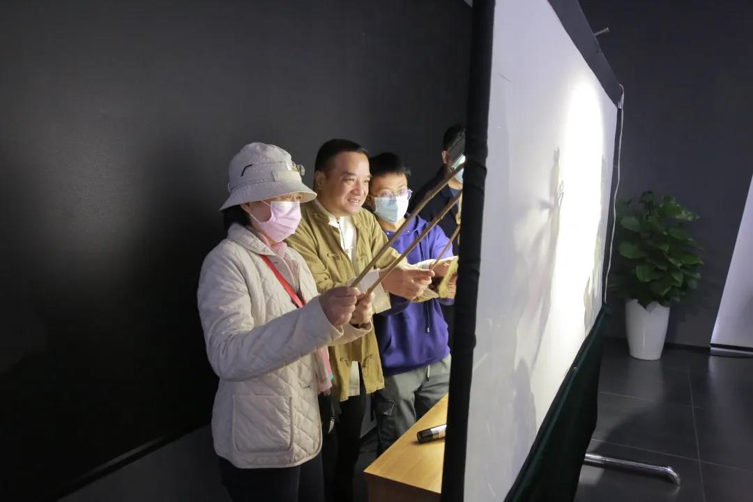 活动的尾声,周老师邀请三位现场观众共同表演一出皮影戏。在老师的细心指导下,三位观众虽是第一次接触皮影戏,却带来了一场别开生面的激烈交战。