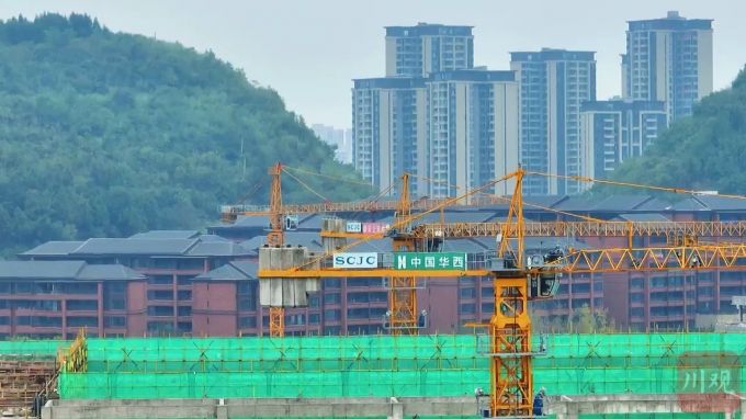 建设现场,塔吊长臂不停运转。