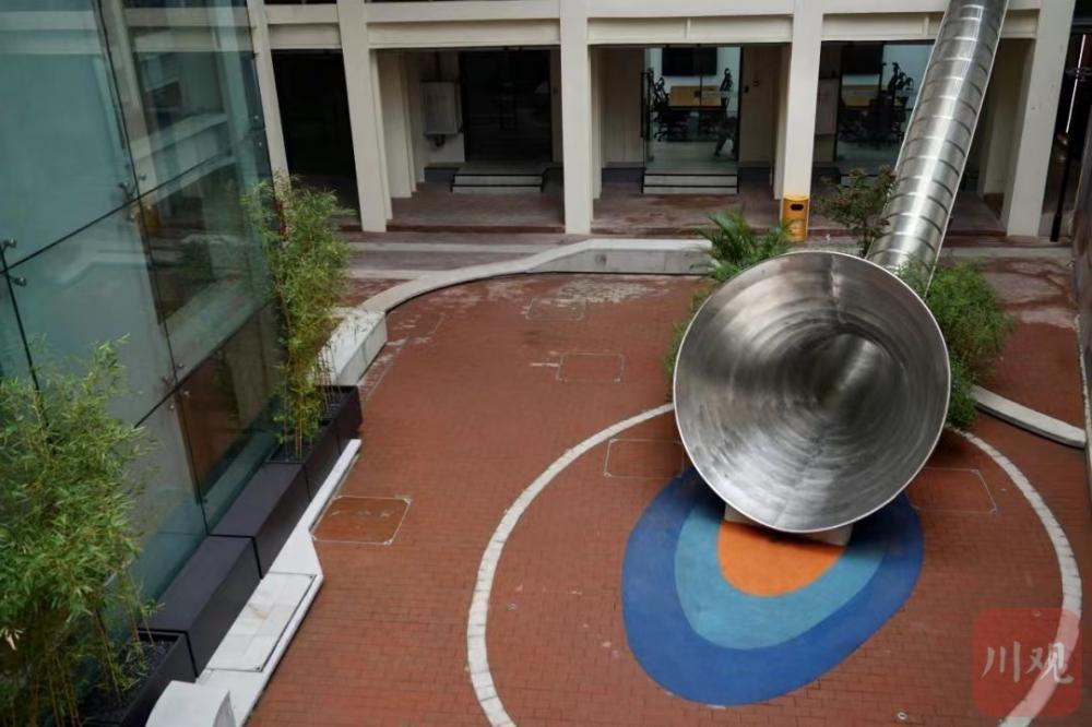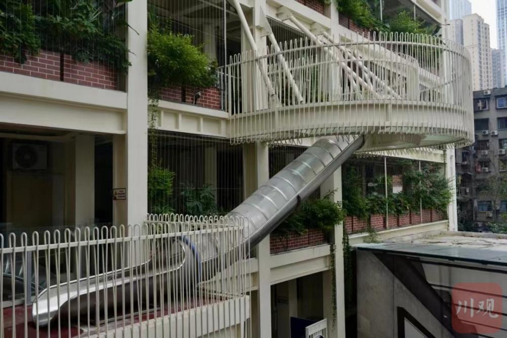 在这里工作的雷存娇说:“这里也许是成都滑梯最多的网红建筑,滑梯比电梯更环保,而且不耗电。”