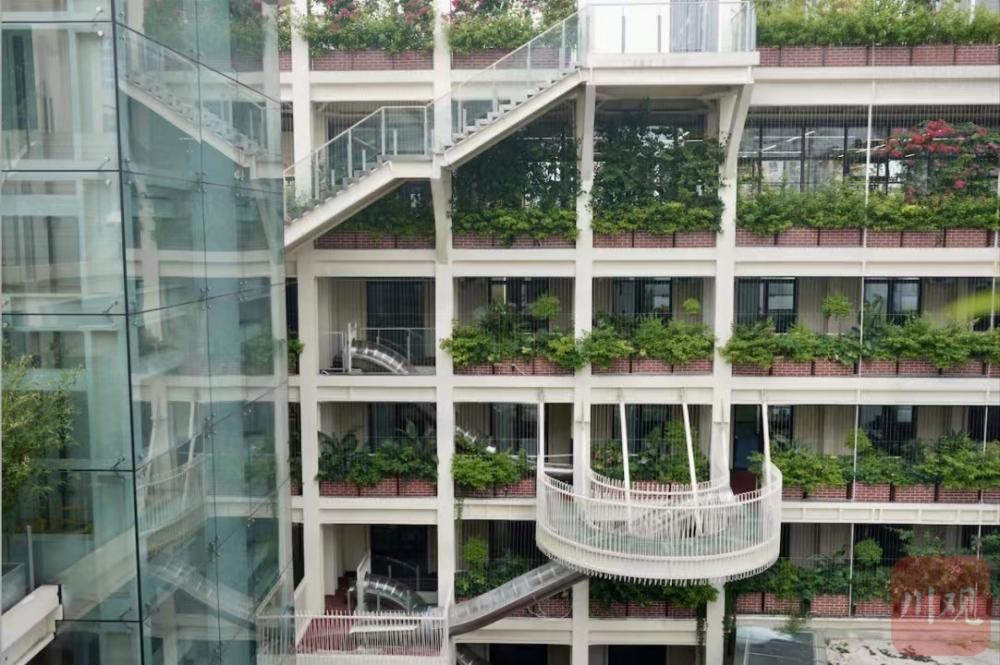 项目于2021年9月动工,2022年5月竣工,改造后的建筑不仅是“办公服务+文创体验+美好生活”的微社区,还是成都市首座可进入的“立体公园”。