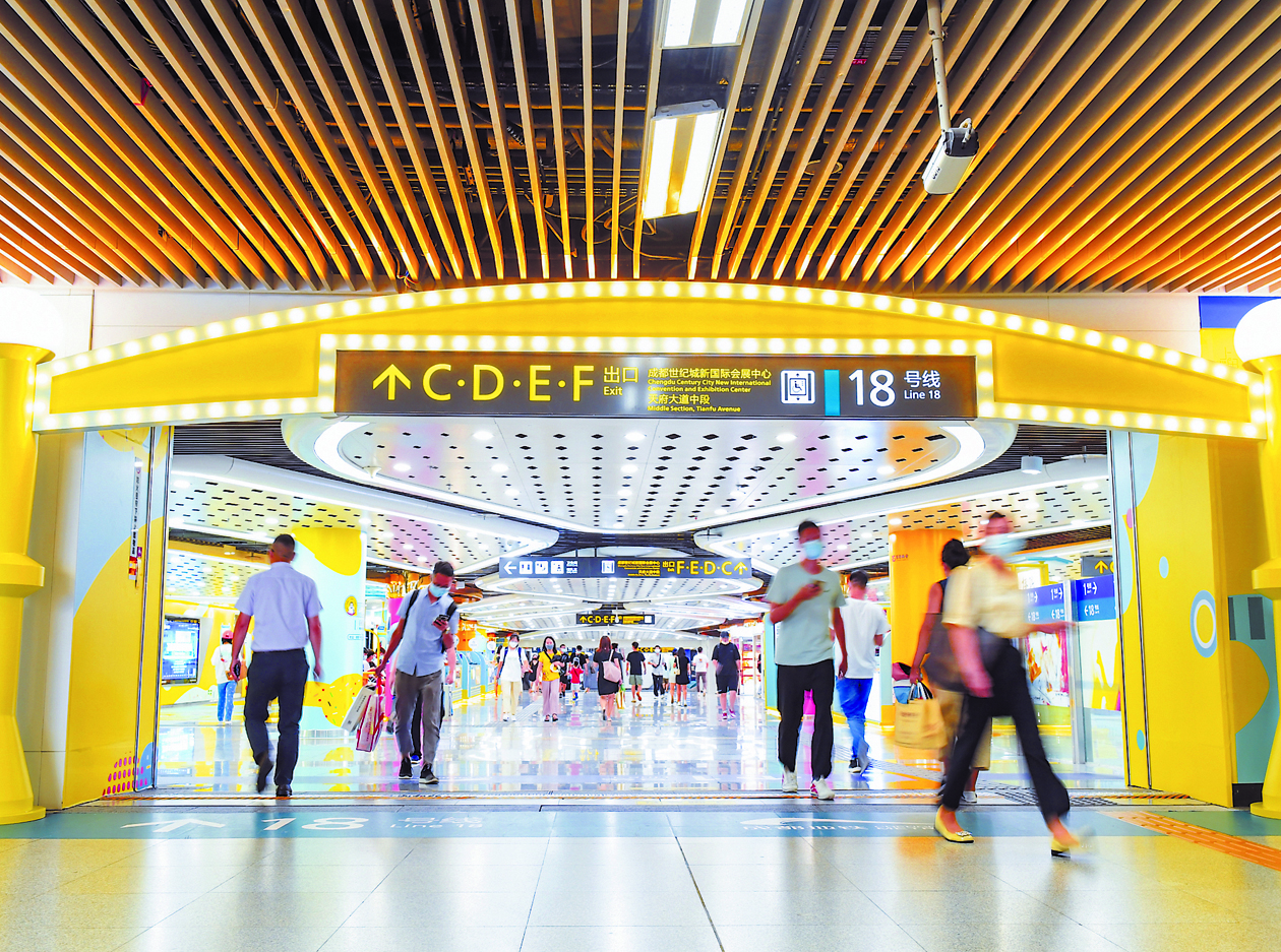 2020年,成都地铁五线齐发,运营里程达到558公里,线网规模跃升全国轨道交通“第四城”,成为首个年内一次性开通5条新线的城市、运营里程最快突破500公里的城市,客运量发展到日均500万乘次。今年,成都轨道交通第四期建设规划和轨道交通资阳线全速推进,54座车站正在进行主体结构施工,累计已有65座车站封顶。