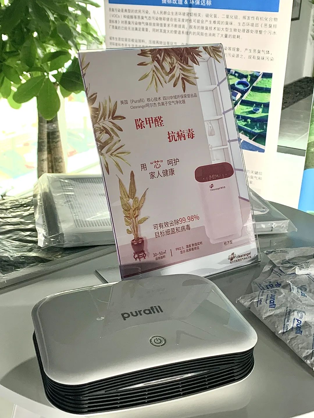 本次主打推出的便是可用于室内的空气净化器,能够杀灭99.98%的目标病毒和细菌。