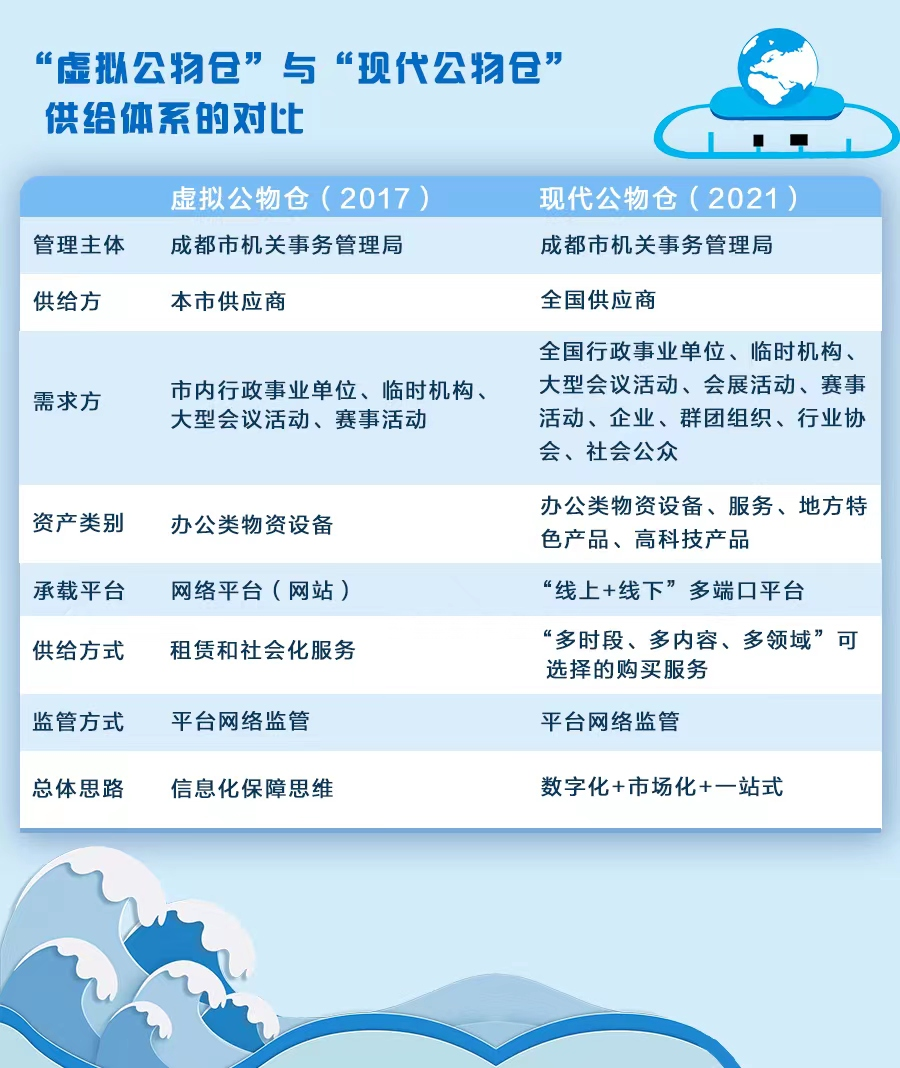 虚拟公物仓升级为现代公物仓,需求方购买的产品既可以是某种物品,也可以是某种技术、解决方案,还可以是某个领域的专业服务,提供的产品从以前单纯的办公物资保障,拓展到了优质产业、名优产品、创新技术和传统文化等。