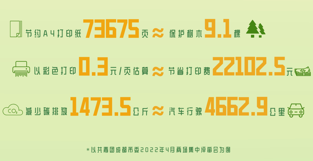 目前,成都市各级部门使用该系统累计举办无纸化会议超800场,参会人数超20000人次,节约纸张近500万张,减少碳排放近100吨。