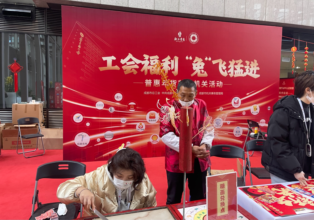 1月18日(腊月二十八),“普惠年货节进机关活动”圆满落幕,三天活动真正做到了“送喜庆”“送服务”“送实惠”。成都职工投资集团投入15万元,率10余家“成都造”企业,为市级机关工会会员发放专场优惠券,吸引4200人次参与,创作春联、福字共600余副,带动普惠消费120余万元。