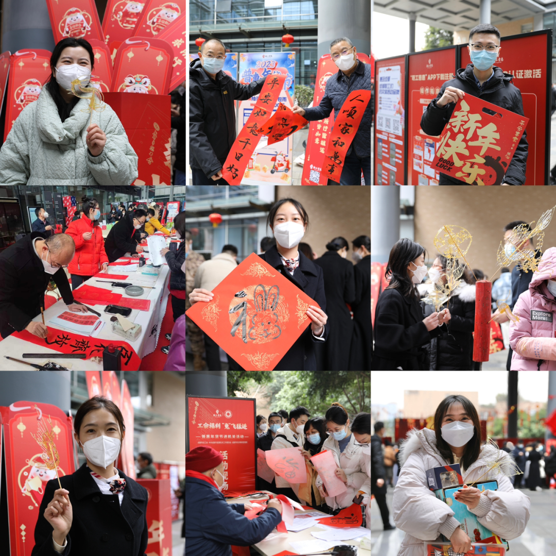 现场参与活动的干部职工手机扫码抽奖券获取春联兑换码,就有机会领取春联套装。干部职工还可以通过扫码参与“猜灯谜赢好礼”线上答题抽奖,或者打开“职工普惠APP”进入年货节专区抢“奖券红包雨”新年红包。
