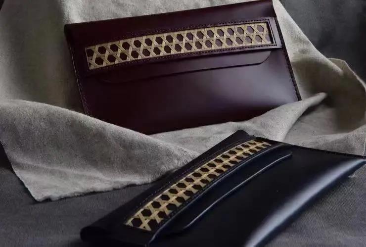 竹编牛皮包
