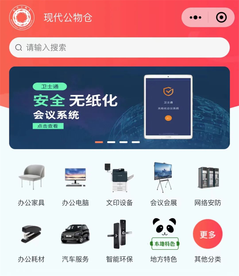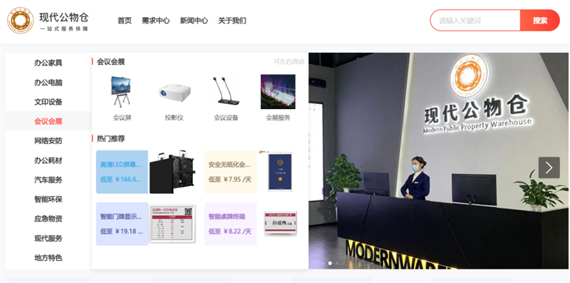 在手机上打开现代公物仓平台的页面,使用者可以发现页面上除了提供普通的办公家具租赁外,还能提供文印设备、汽车服务、无纸化会议、应急物资保障、物流配送等11个栏目的特色服务。在现代公物仓平台,使用方可以通过网上智能比价的方式,选择同品牌、同质量的最低价格产品,促使入驻商家形成良性的竞争,有效降低采购服务成本,以最低价格享受到快捷方便的“一站式”服务。