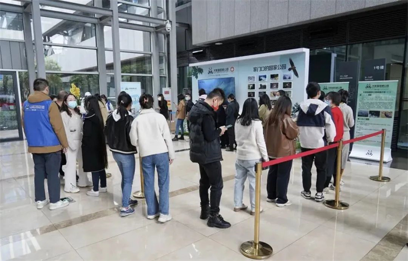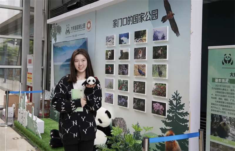 活动现场,国家公园形象展示区的照片墙吸引参观者们纷纷驻足观赏。通过一张张生动的照片,大家进一步了解大熊猫国家公园的地理位置、分区、动植物等相关信息。在互动大屏区,循环播放的大熊猫国家公园形象宣传片,则让人们更加深入了解到国家公园保护与发展的成效。