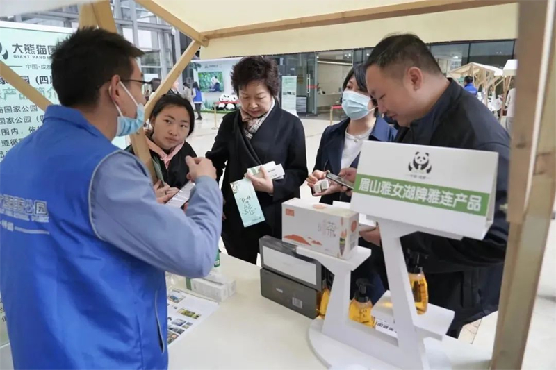 特别是在“天府熊猫林里”展示区,来自都江堰市、彭州市、崇州市、大邑县、眉山等县(市)的“大熊猫国家公园原生态产品”琳琅满目,包括都江堰青城雪芽、彭州宝山古蜀红茶、崇州文井牛尾笋、大邑道源仙翁茶、眉山雅女湖牌雅连等数十种,并通过“现代公物仓”实现大熊猫国家公园形象生态价值转化。