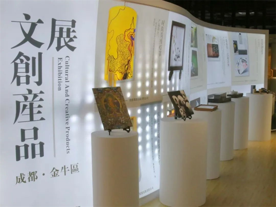 “文创之骄”展示“遇福台”茶案、“石板唐卡”等金牛区代表性文创公司文创产品,以文化产业助力乡村振兴。