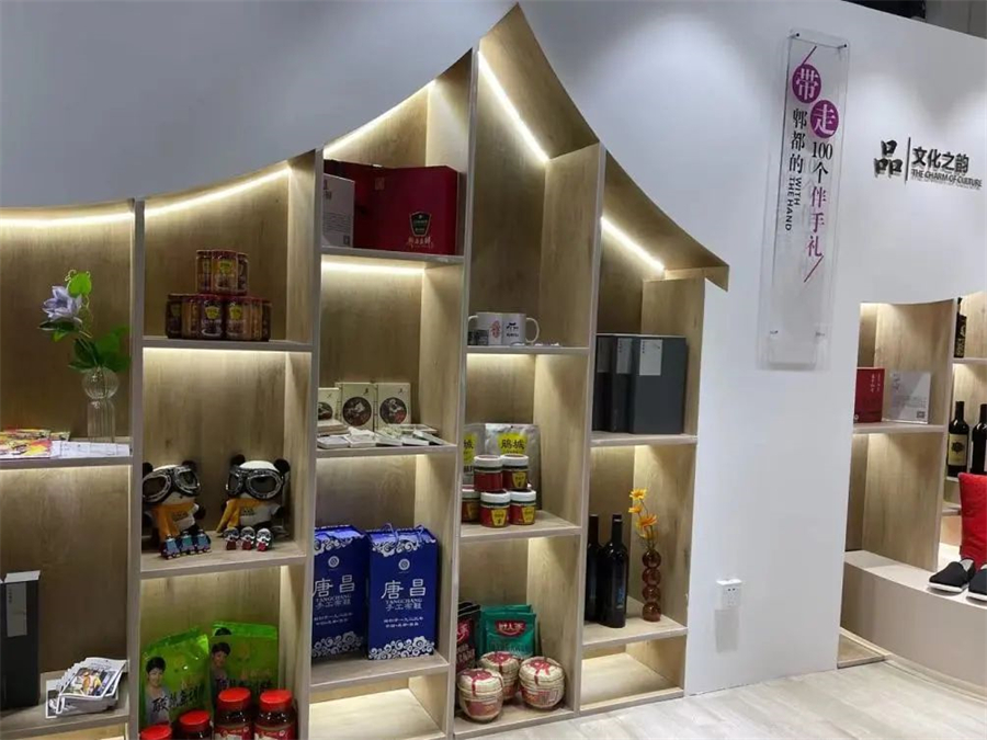 现代公物仓郫都展位布局“寻西蜀之脉、创兴业之城、享公园之美、品文化之韵”四大板块,引入唐昌布鞋、安龙小微盆景、青冈苗圃、蜀绣、鸟笼等特色文化产品,推广郫县豆瓣系列调味品、蜀绣战旗“福”文化系列产品。
