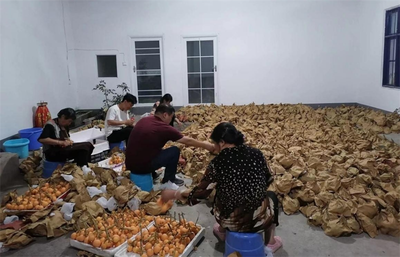 在众多枇杷种植户中,李万文家庭农场的枇杷是其中的“佼佼者”。记者来到农场见到李万文时,他正和员工一起在枇杷园里对枇杷树进行疏果、套袋,随着近期气温逐步回升,枇杷开始进入春季生长和管理的关键时期。“目前我们正在做产品上市的准备,等到四月下旬就可以摘袋收果了。”李万文说到。