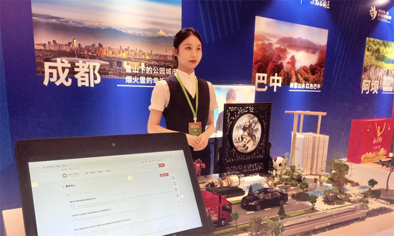 如何将公园城市搬进会场,成都展台以天府绿道作为设计灵感与思路,打造微缩版花卉场景,同时融合西南交大参与设计的“动车组”、成飞参与研制的“歼20飞机模型”、大运会吉祥物“蓉宝”、川剧“变脸玩偶”等一系列颇具成都特色的摆件,一眼GET“成都范儿”!