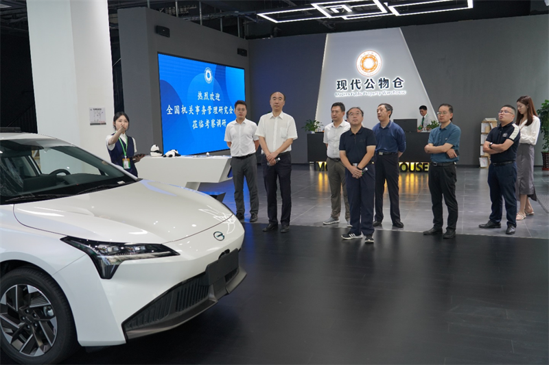 2023年9月13日,全国机关事务管理研究会秘书长、中国机关后勤杂志社社长徐进一行6人赴太古里“现代公物仓”体验中心实地体验新能源汽车、无纸化办公、非遗文创等入驻产品,现场了解成都市市级机关公物仓的发展历程、运行模式和功能拓展。徐进充分肯定了成都在公物仓建设工作中的创新实践,鼓励成都要持续深化理论研究,着力提升公物仓整体效益。市机关事务管理局党组成员、副局长李世明,市国资管理中心相关负责同志陪同。