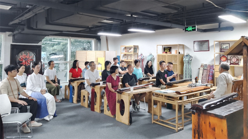 中国古琴是世界最古老的乐器之一,因其清、和、淡、雅的音乐品格,位居古代文人风雅之首。在“现代公物仓”体验中心2层,一位古琴老师正在轻拨琴弦,不少市民围坐在周围,安静地欣赏着穿越千年的琴音。