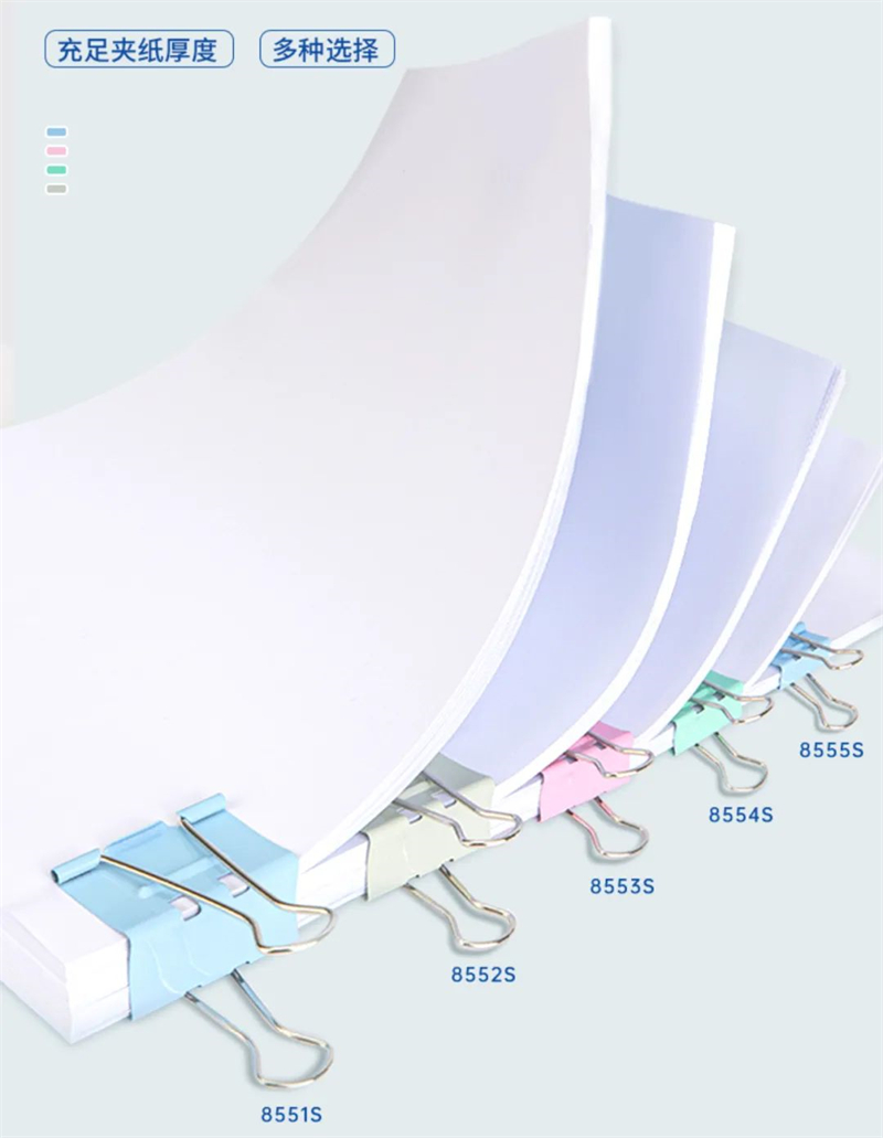 3.8克,是一只规格25mm的燕尾夹的重量。作为分类收纳工具,它可帮助文件的分类与存储,让日常工作有条不紊。它具有强大的夹力和灵活的调整范围,能够将零散的文件、票据、纸张等化零为整。无论是重要的合同文件,还是日常的便签记录,燕尾夹都能随时随地将它们归整在一起,避免散乱和丢失,且易于查找,提升了文件管理的便捷性和灵活性。