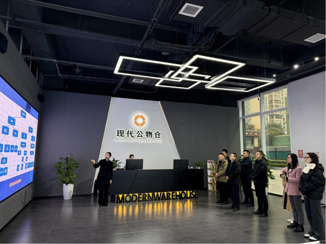 2024年12月18日,新疆生产建设兵团机关事务管理局副局长王新俊一行5人赴现代公物仓线下体验中心(睿东中心)考察调研,实地体验智能办公终端、办公家具及区(市)县特色等入驻产品,现场了解成都市市级机关公物仓建设发展历程、运行机制及管理制度等内容,市国有资产管理服务中心主任晋军,省管局省直国有资产管理处处长彭葛飞等陪同。