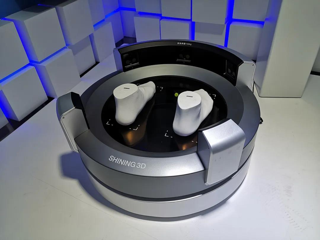 这部先临三维足部扫描仪,可以快速获取高精度脚型数据,采用多台3D视觉传感器进行全方位扫描,获取足部三维模型数据,并利用人工智能云计算自动测量分析生成足部形态及个人脚型报告设计,3秒就可完整获取一双脚的高精度3D数据,并通过这款桌面打印机桌面式快速成形,接收反馈建模数据,快速打印出一双完全契合脚型的专属鞋垫。