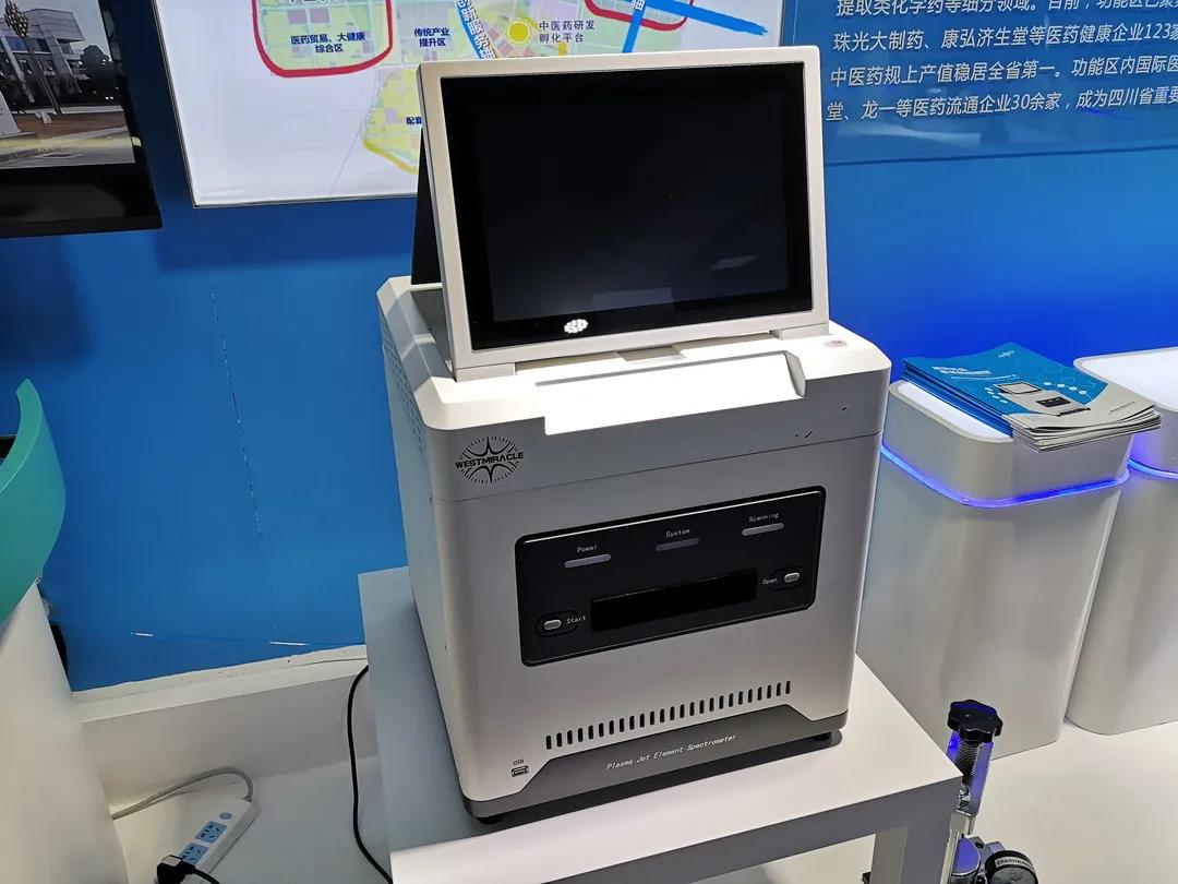 该仪器为西齐等离子体射流光谱仪,用于固体样品中无机元素的定性定量检测,具有分析速度快、样品处理简单、检验准确等优点。