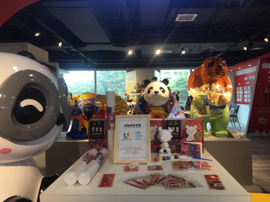 GOGOPANDA展区围绕“GOGOPANDA熊猫出发”不断发展的历程和所获得的荣誉,包括“中国2019最具品牌价值文旅IP”大奖、“中国最佳原创设计版权奖”等内容进行展示。两大IP“GOGOPANDA巴郎熊猫”和“GOGOPANDART艺术熊猫”雕塑在展位上显得憨态可掬,“GOGOPANDART艺术熊猫”雕塑则反映了浓郁的成华特色;展墙上精选呈现了近年来打造的品牌重点业务项目,包括城市主题文化和艺术景观项目、文旅产业品牌合作开发项目,以及品牌活动推广服务项目介绍。展台上呈现的是GOGOPANDA品牌特色文创产品和跨界文创产品,以及作为第31届世界大学生夏季运动会特许经营授权专款合作商的大运会合作文创产品。其中,“GOGOPANDA熊猫出发”文创产品版块受到了视察组领导的肯定和称赞。
