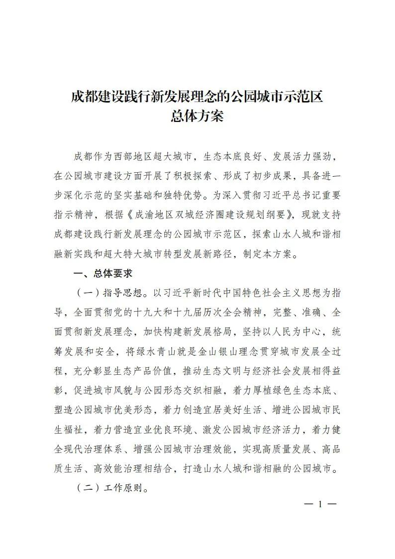3月16日,国家发改委网站正式发布《成都建设践行新发展理念的公园城市示范区总体方案》。