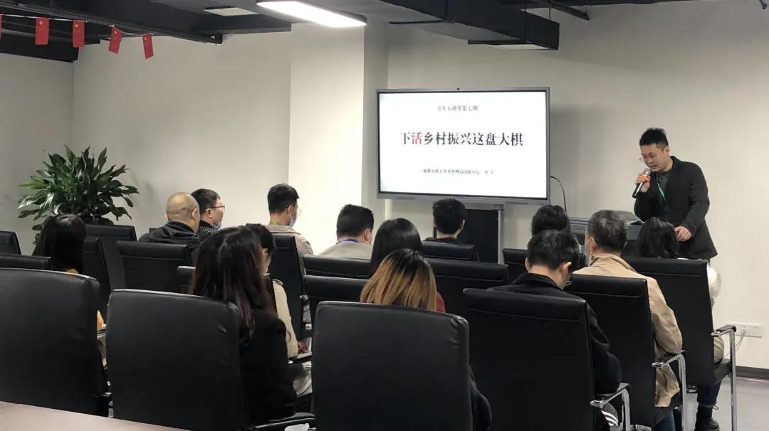 局硕博讲师团成员、现代公物仓项目负责人李亨博士以《下活乡村振兴这盘大棋》为主题展开探讨。局青年职工、郫都区友爱镇青冈村一行,共30人参加本次培训。