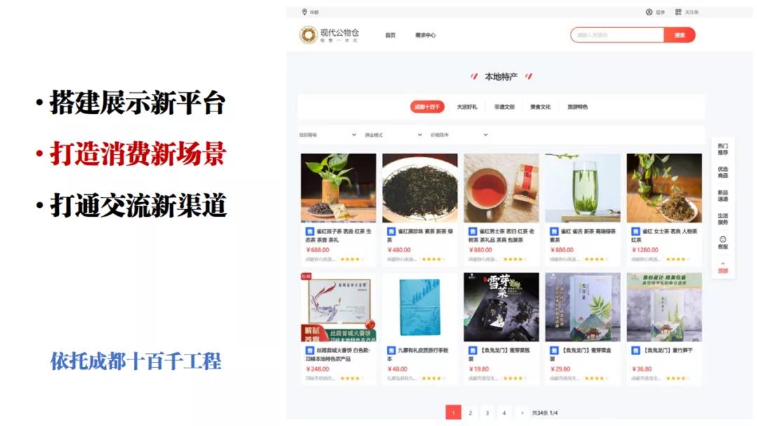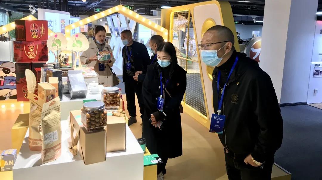 交流结束,郫都区友爱镇青冈村党委书记黄正洪带队考察现代公物仓线上线下平台的建设成果,现场体验了大运会、非遗文化、地方特产、高新技术等展位的相关产品。