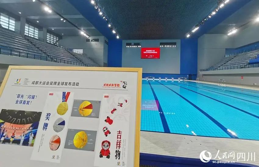 成都成就梦想,金牌凝聚荣光。今年3月18日,成都大运会奖牌全球发布活动就在这个游泳跳水馆里举行。“蓉光”闪耀,碧水映金。成都大运会奖牌“蓉光”取自成都的简称“蓉”,同时寓有“荣光”之意。整体创意以“五洲融合、天府文化、赛事标识系统、成都成就梦想”为核心,在展现体育精神、呈现古蜀文化、彰显赛事名城美好愿景的同时,强调本届赛会特色,着重表达新时代天府文化内涵。