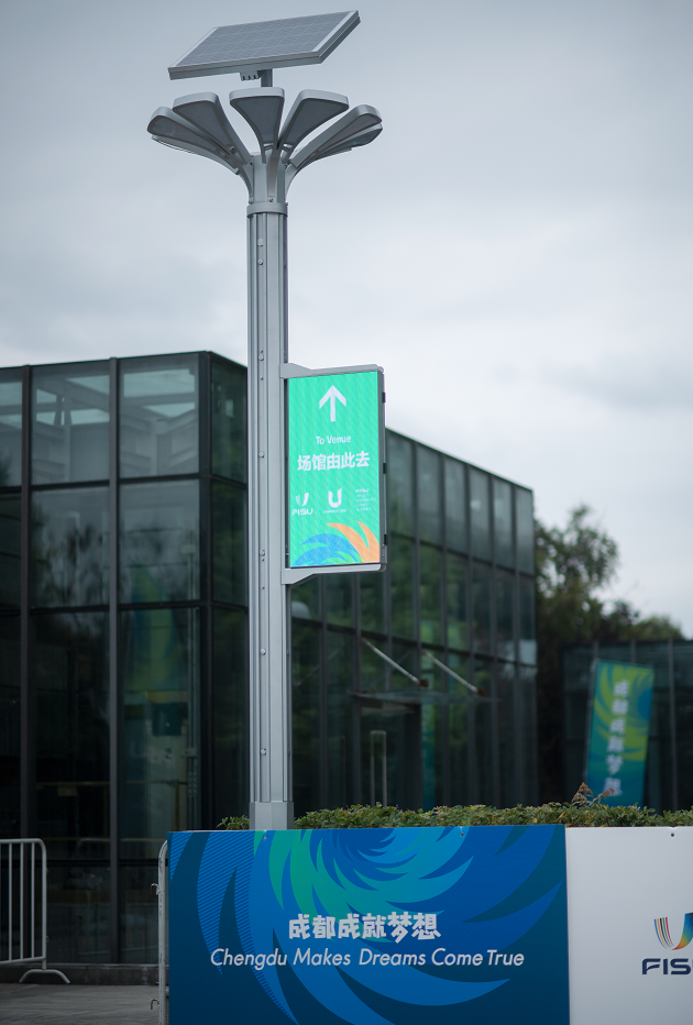 同时,成都大运会因地制宜推进光伏、光热系统建筑一体化应用,让分布式可再生能源就地利用。据了解,在凤凰山体育公园等具备条件的场馆推进地源热泵系统,在双流网球馆人检通道等功能指示区设置“有光就有电”的碲化镉发电玻璃,可提供部分绿色电能。