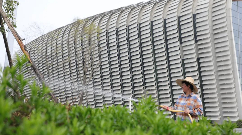 环保理念不仅仅体现在地面,地下也暗藏乾坤。目前,新都香城体育中心已建成雨水回收系统,场馆外一周都采用透水混凝土技术的结构地面,这种黑科技不仅能让地面高效渗水、透水,持续保持路面干爽,还能将雨水自然留存。留存的雨水经过回收系统处理,又可以转换为场馆的绿化养护用水,全年可节水3000吨以上。