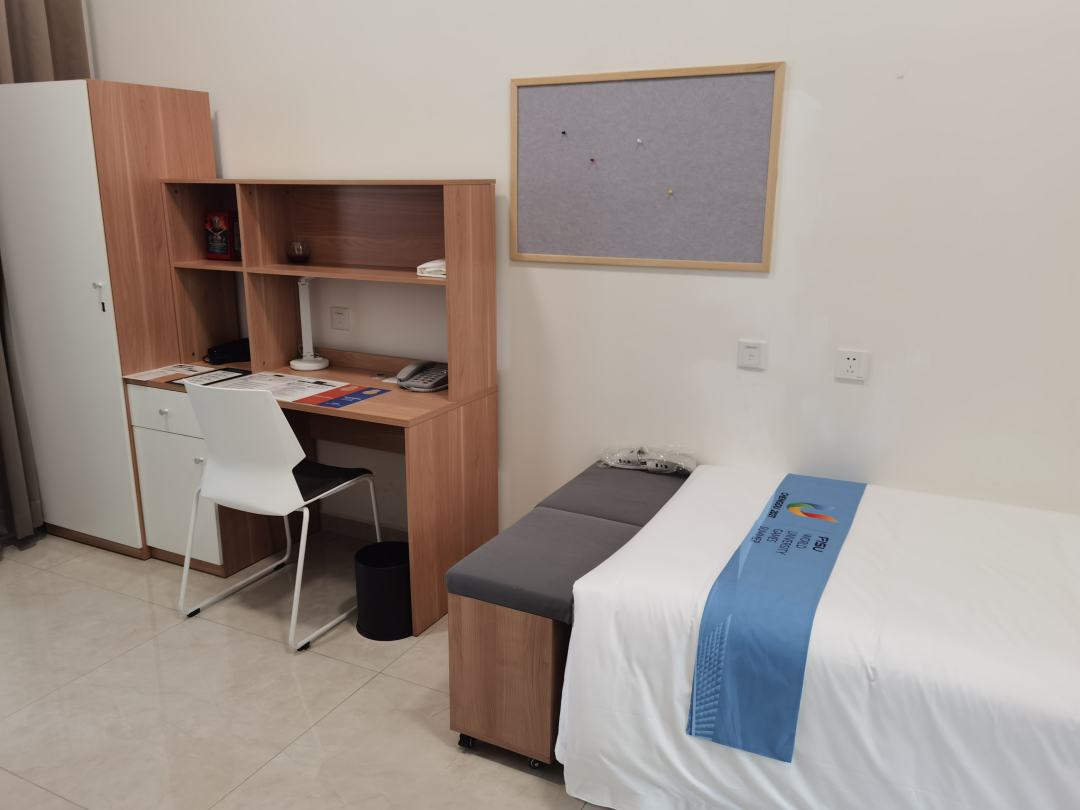 大运村以“建改结合”方式全面融入成都大学。其中,在代表团公寓房间设施方面,强调简化陈设,在各生活设施设备一应俱全的同时,配备了家庭装绿色环保洗化用品和低值易耗品,床铺等设施还可实现资源循环长期利用,主要功能房间空调可分时分段调控,极大地降低空调能耗和碳排放。